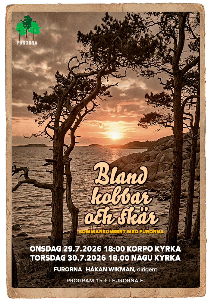 I slutet av juli 2026 ger kören Furorna sig ut på en stämningsfull konsertturné i den vackra åboländska skärgården. Under två sommarkvällar fylls Korpo kyrka och Nagu kyrka av körklanger, havsbris och gemenskap.